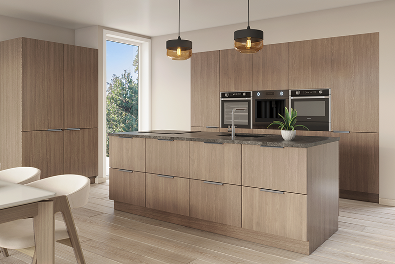 Kjøkkenmodellen Tvedestrand er inspirert av en rolig og naturlig estetikk. Med sitt lune tremønster gir dette kjøkkenet et ekte og harmonisk uttrykk. Tidløs varme med moderne styrke.